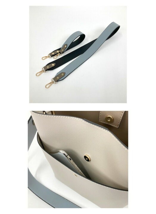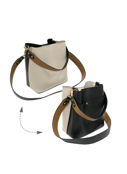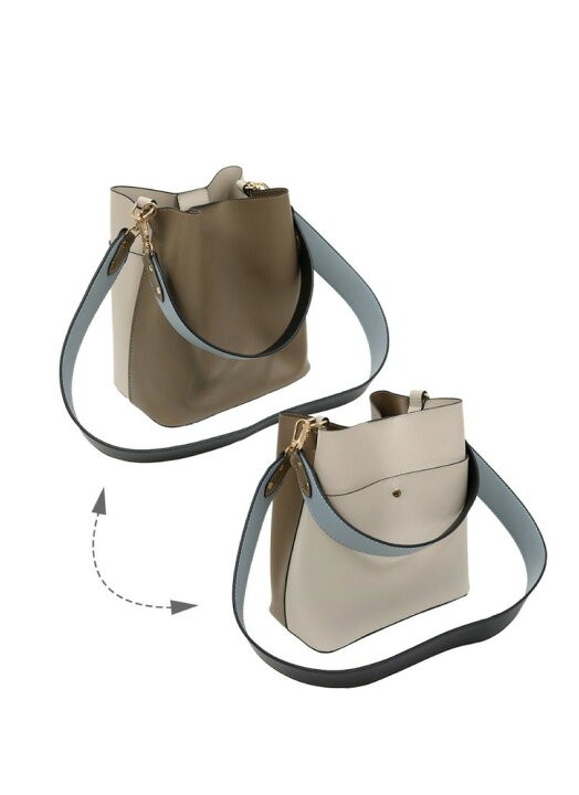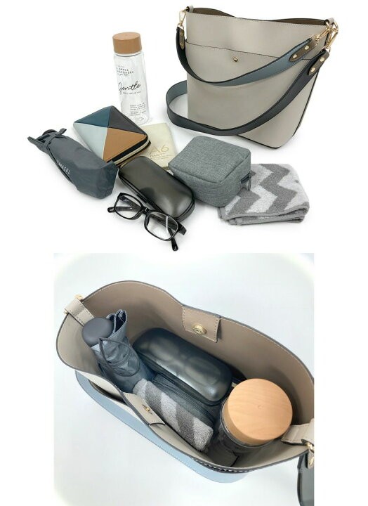 両面使い出来る長短2種のショルダーストラップ付きのWフェイス仕様で、小物が出し入れしやすい外ポケット付き◎