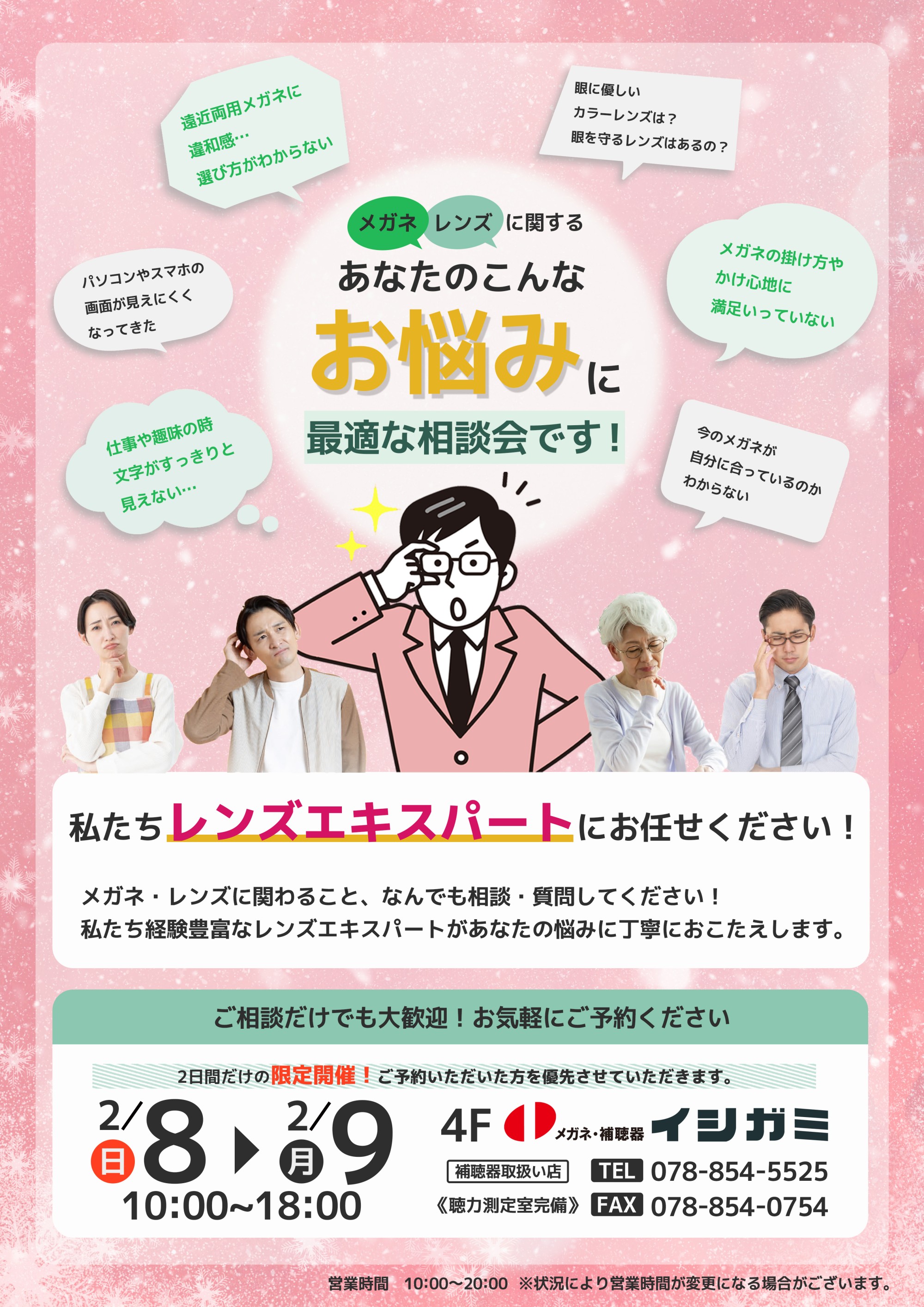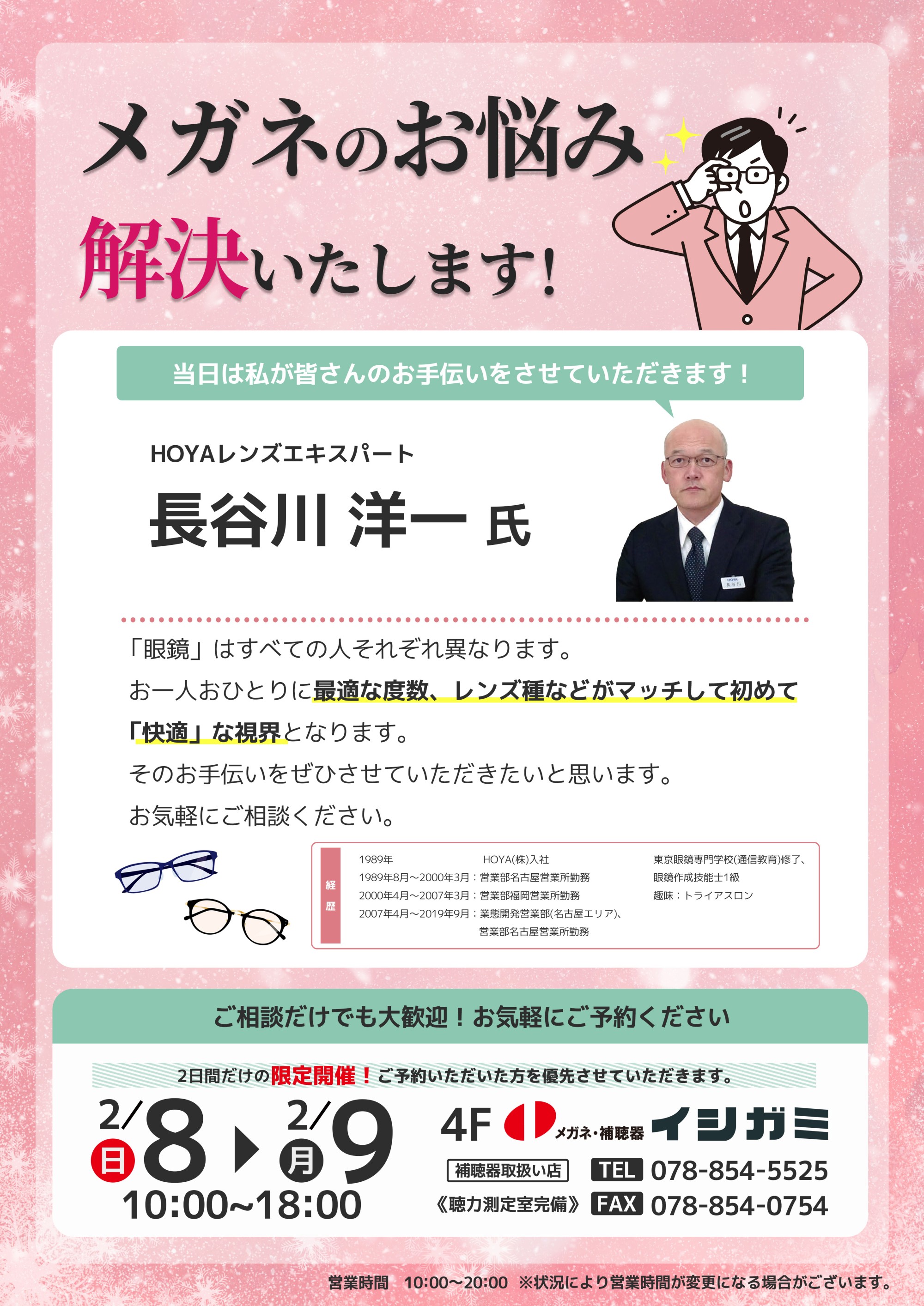メガネ補聴器のイシガミ Liv住吉店4F tel:078-854-5525※ご予約の方を優先とさせていただきます。