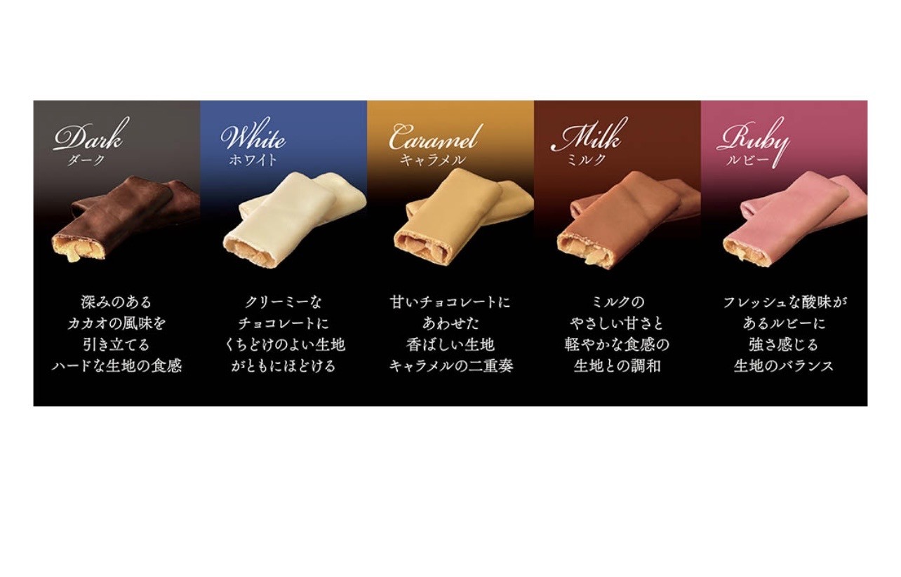 チョコレートのくちどけと薄焼き生地の食感の絶妙なハーモニーを奏でるために、各フレーバーごとに生地の配合から焼き加減にまでこだわった逸品です。