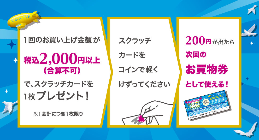 お買い上げ金額が税込2,000円以上(合算不可)で、スクラッチカードを1枚プレゼント🎁