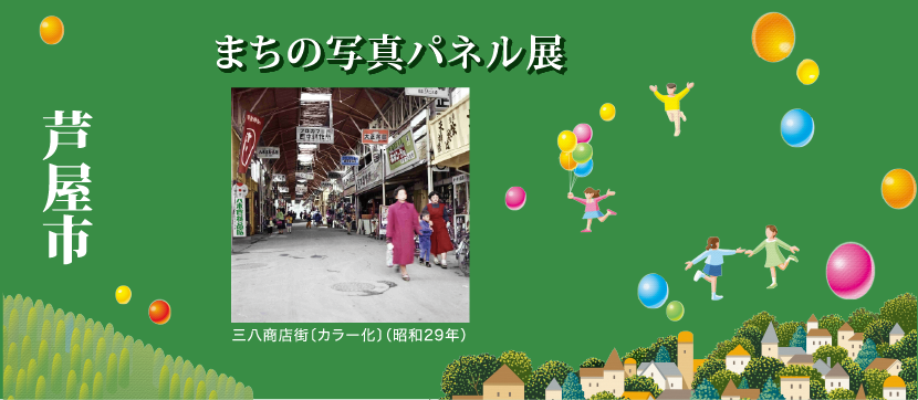昭和の芦屋のまちの風景や暮らしのようすを写し取った写真パネルを展示します。