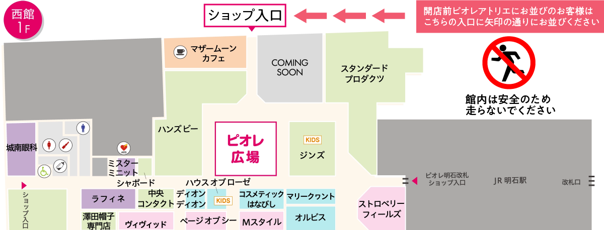 ※開店前にピオレアトリエにお並びの方は、マザームーンカフェ横自動ドア出入口にお並びください。
