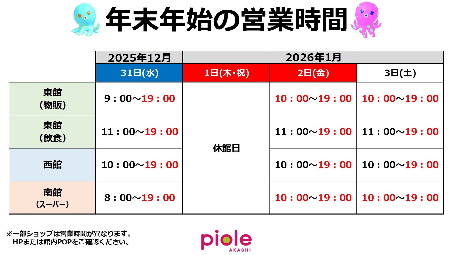 また、2026年1月1日(木・祝)は全館休業とさせていただきます。