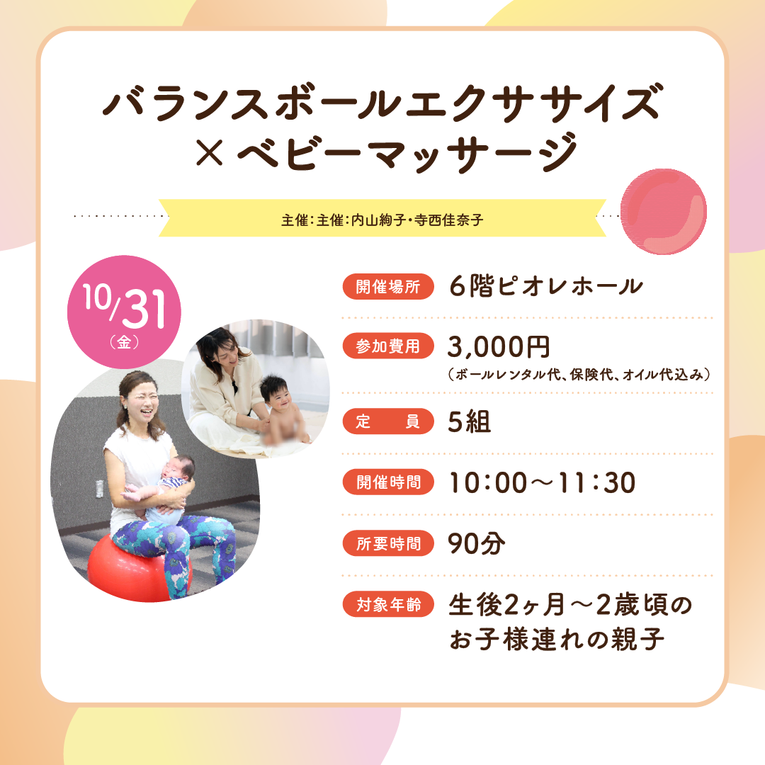 バランスボールでママの心身のケアとして『はずむ有酸素運動』した後、ママと赤ちゃんのアタッチメント(愛着関係)をしっかり作るベビーマッサージをしませんか?
