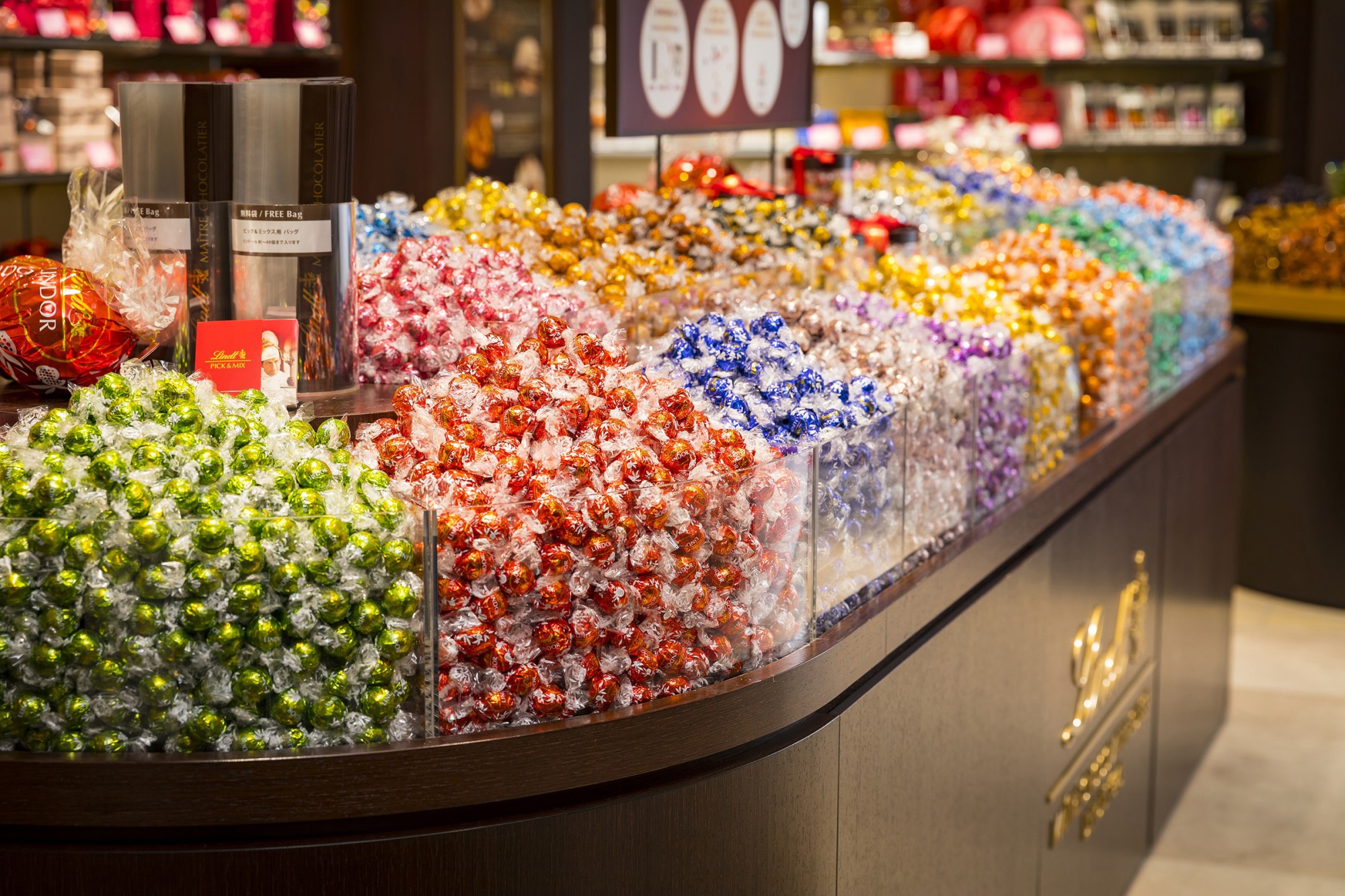 リンツを代表するなめらかな口どけが特徴の「リンドール」を、お好きなフレーバーをお好きな数だけ量り売りでお買い求めいただける、直営店限定の「PICK&MIX(ピック&ミックス)」をお楽しみいただけます。