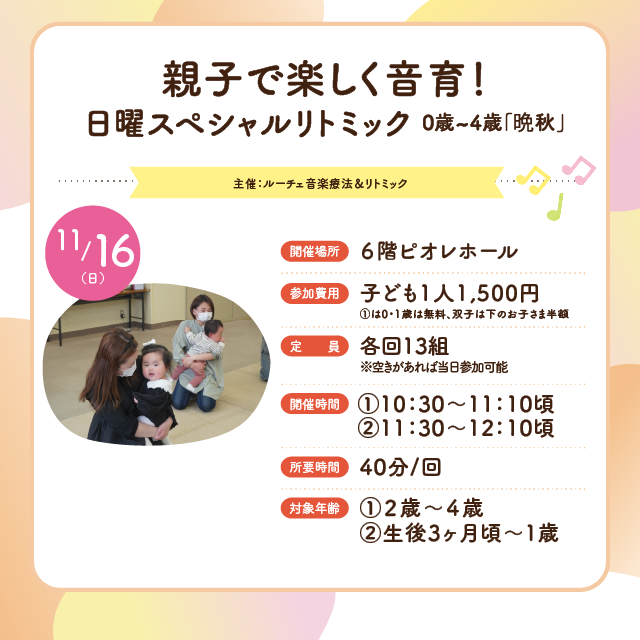 親子で楽しく音育!日曜スペシャル リトミック 0歳~4歳「晩秋」