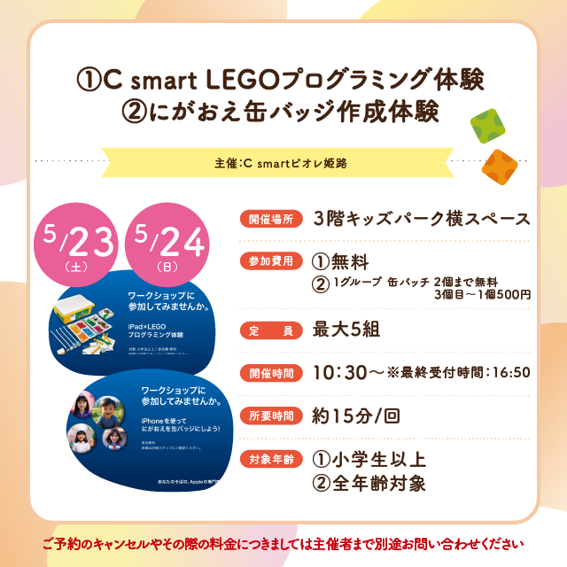 C smart LEGOプログラミング体験 & にがおえ缶バッジ作成体験