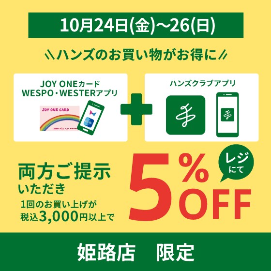 ジョイワンとハンズアプリをご提示で5%OFF!