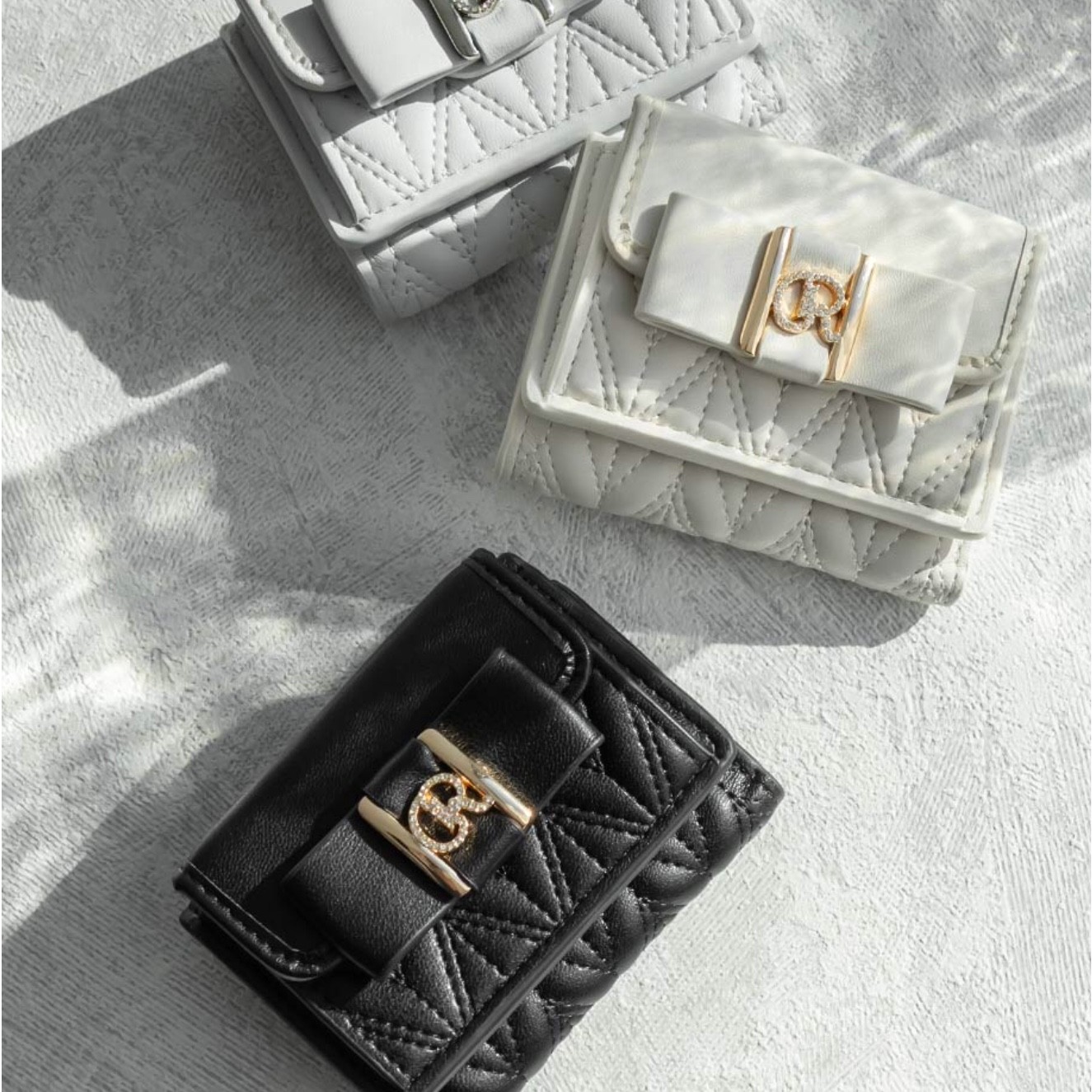 ビジューモノグラムリボン三つ折りウォレット