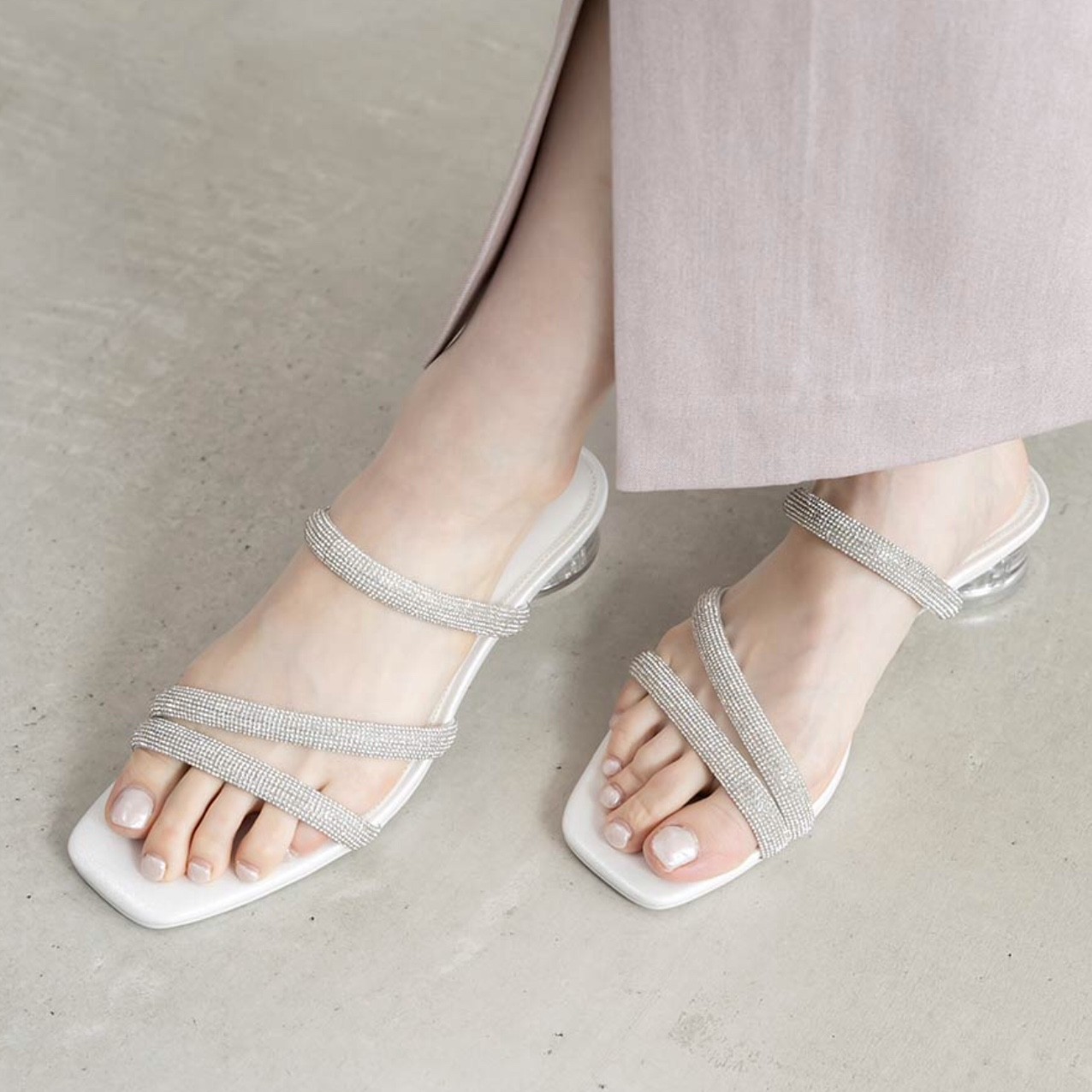 クリアヒールビジューストラップサンダル