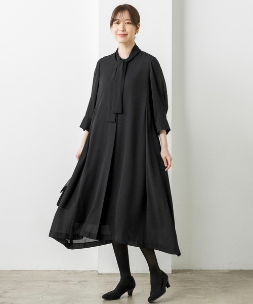 ≪デザインブラック≫ボウタイフレアワンピース
