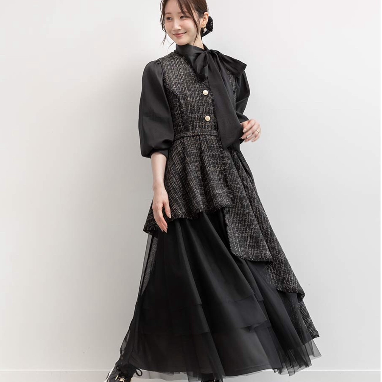 チュールレイヤードジャケットワンピース