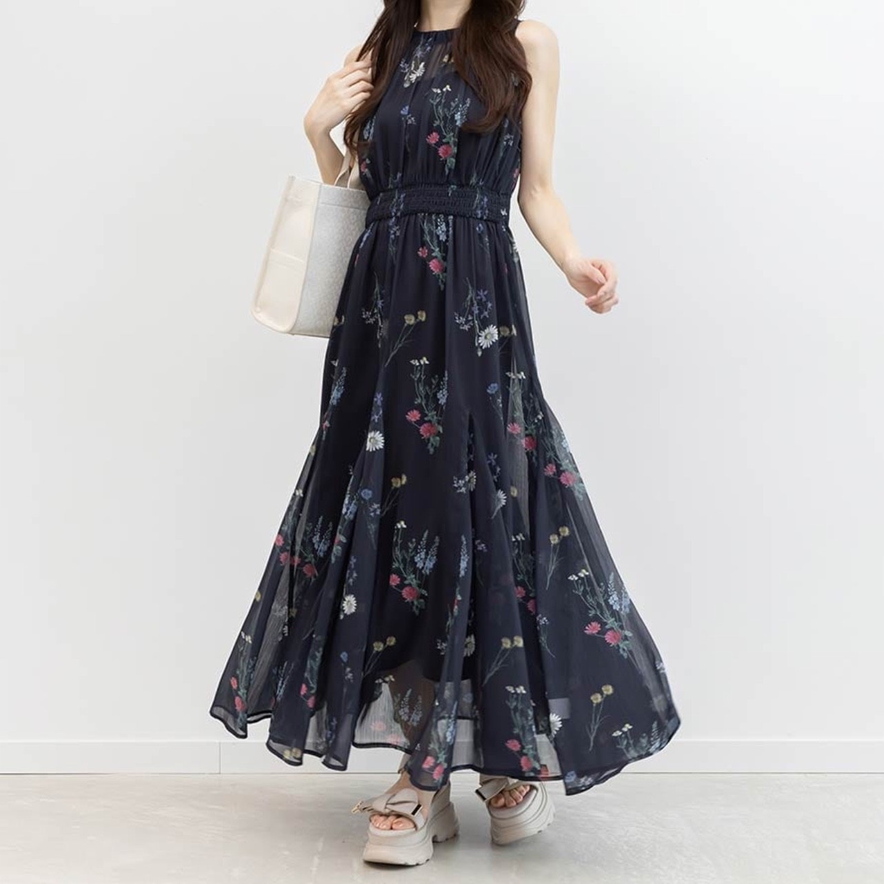 ボタニカルフラワーシフォンワンピース