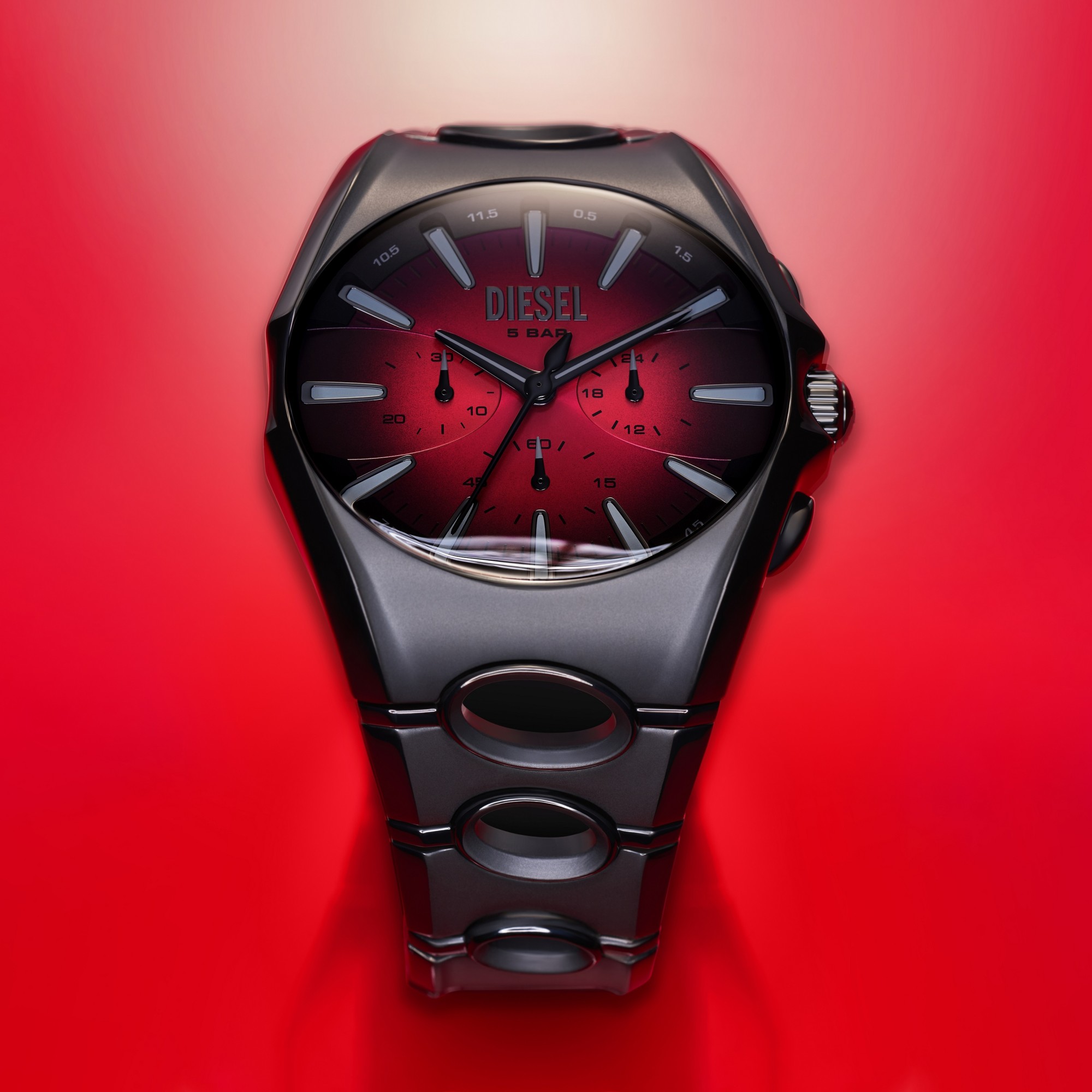 ホワイトセラミックコーティングを施したステンレススティールケースは、スペースシャトルに使用される熱反射塗装を想起させ、ホワイトのナイロンストラップは、ミッキーの宇宙服同様のポップなレッドカラーがアクセントとなっています。