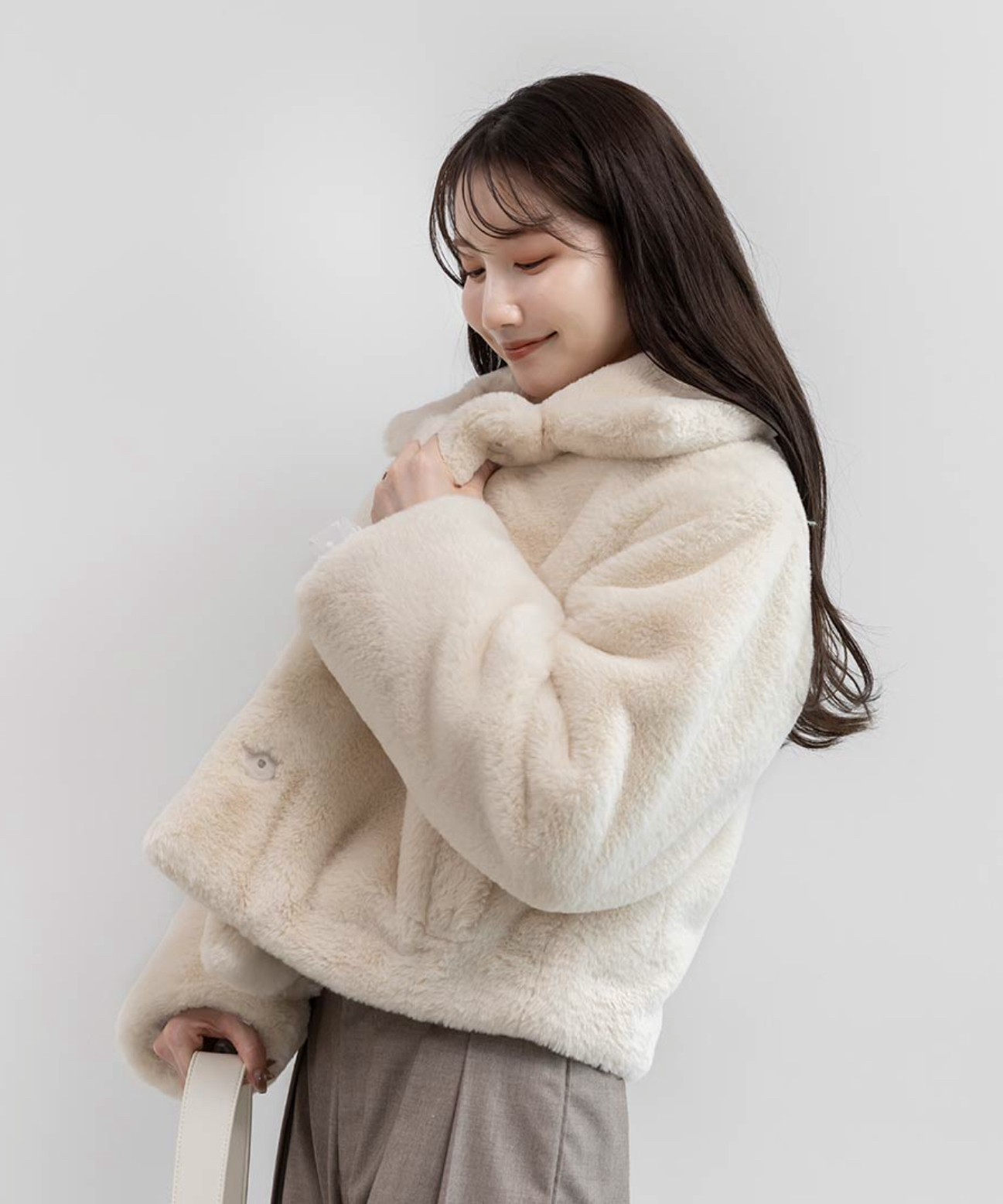 普段のコーディネートをクラスアップしてくれるショート丈のフェイクファーコート。