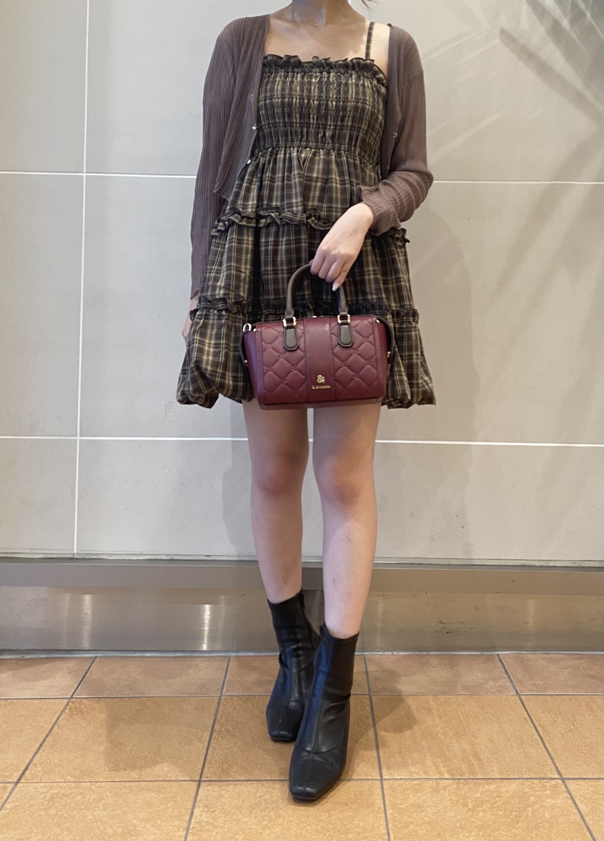 ¥2800:スウェードブラウン/キルトピンク/フリルブラック