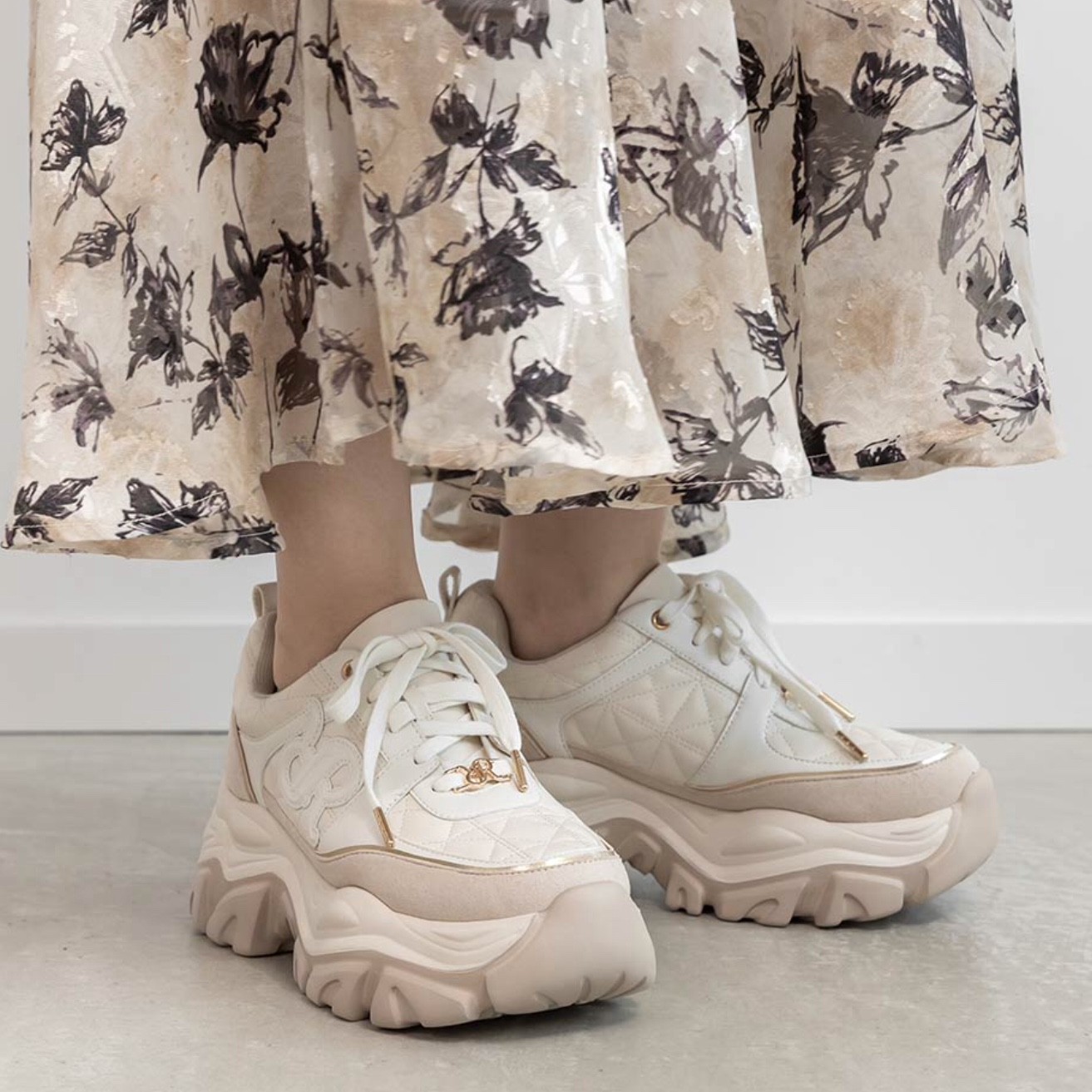 胸元を彩る小花柄エンブレースとカップ上辺のチュールがモダンな印象に。