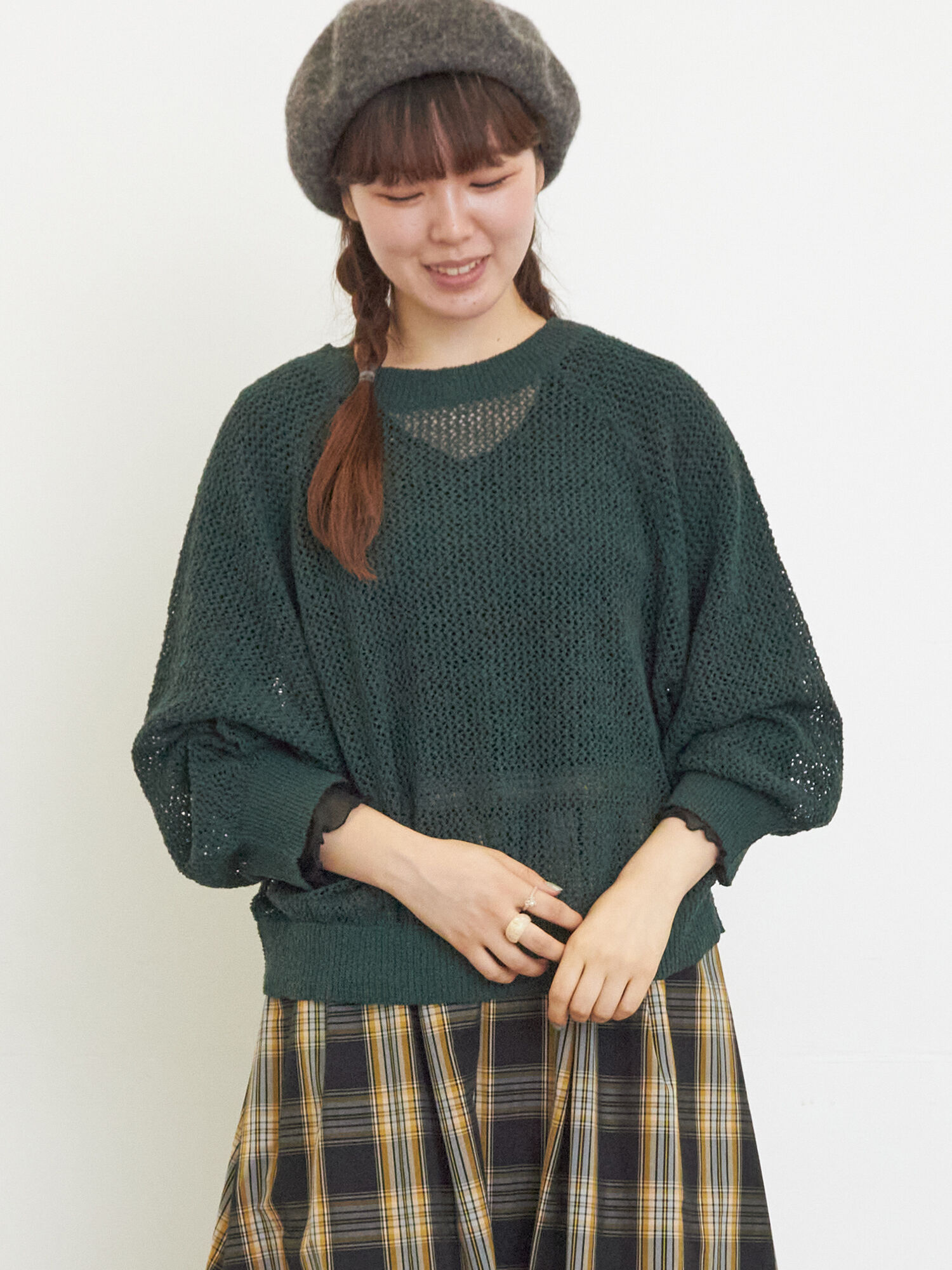 メッシュ編み前後2WAYドルマンスリーブカーディガン