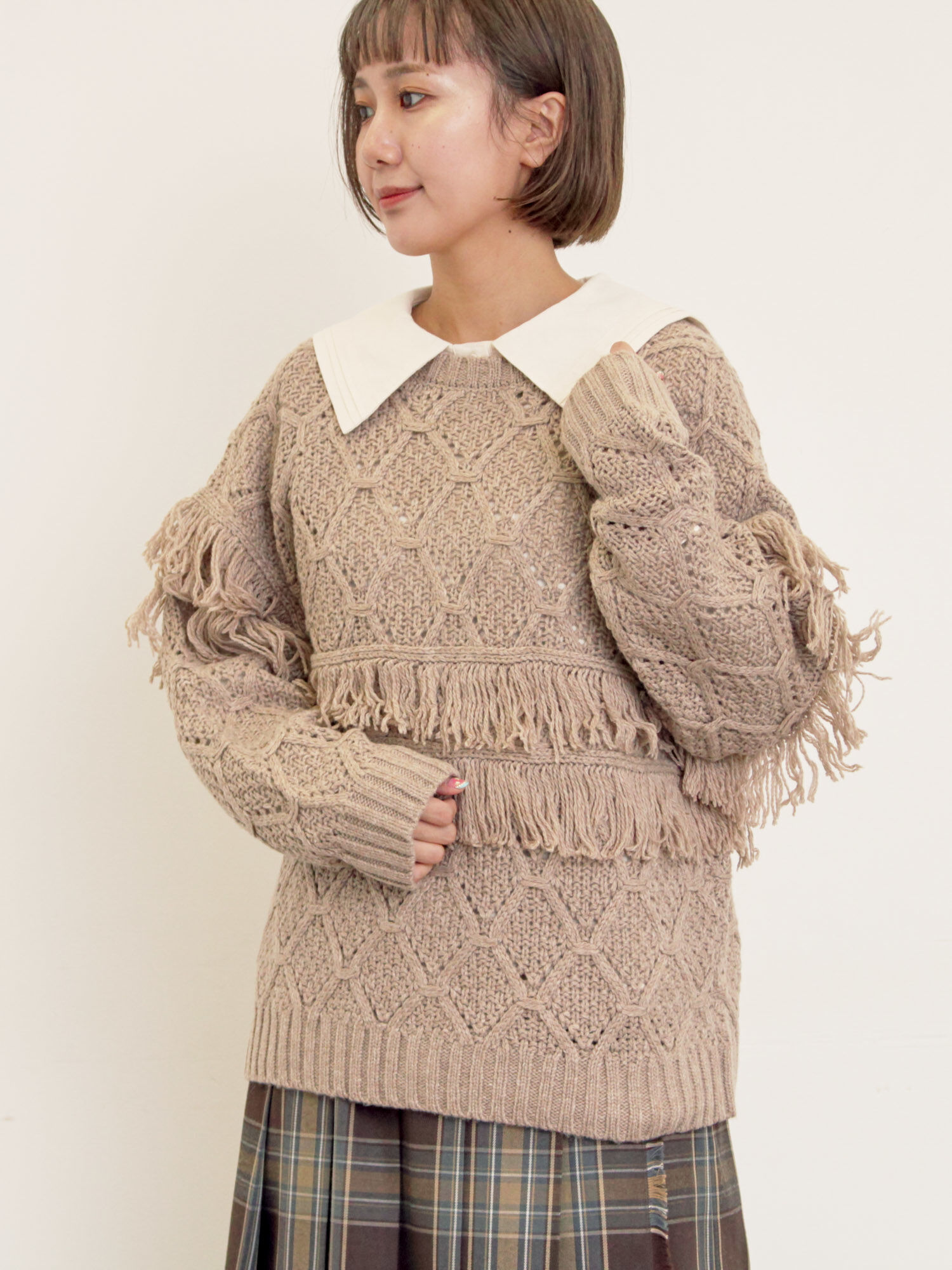 【Fluffy Wool Blend】フリンジ前後2WAYニット