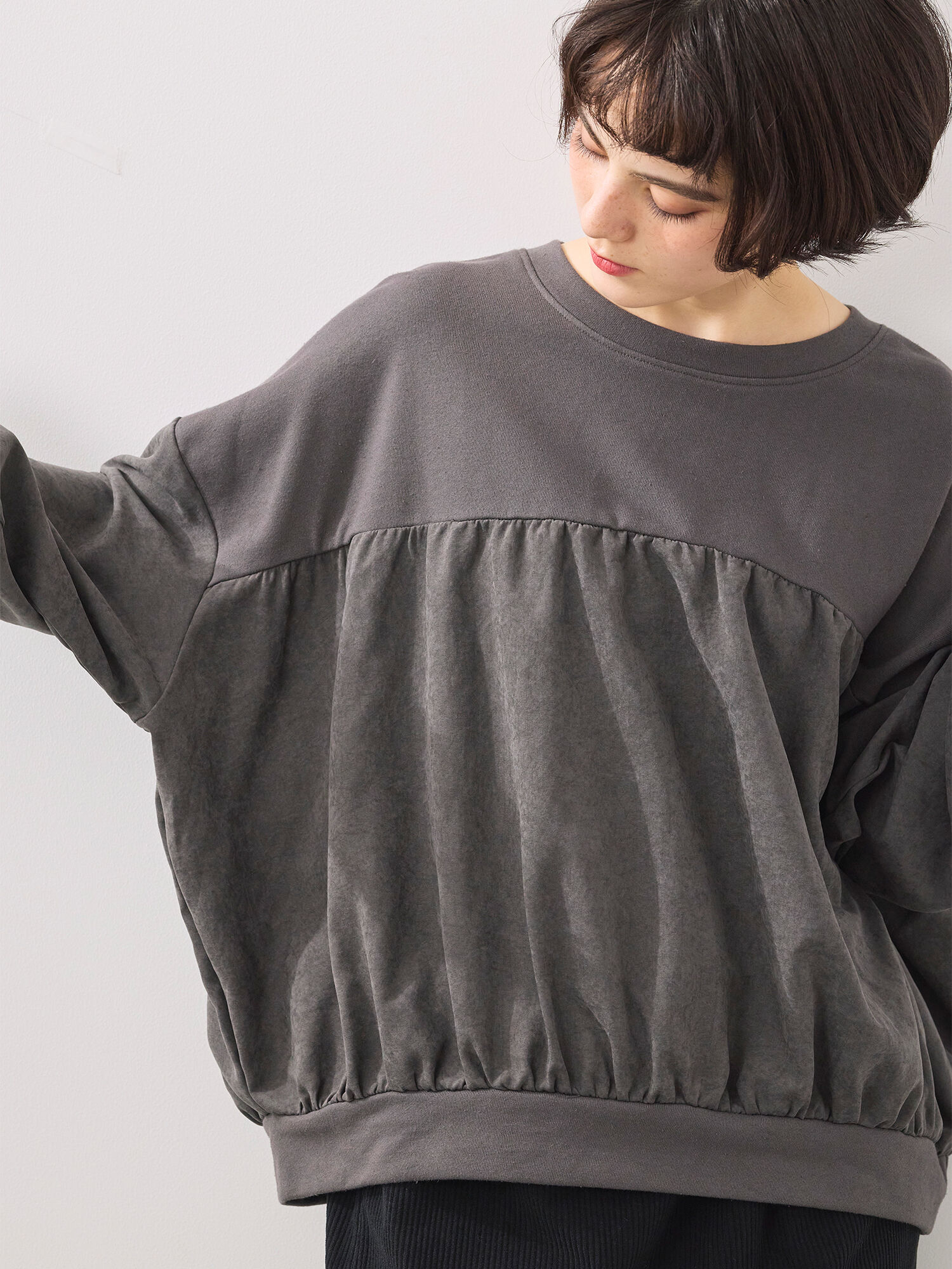 上下ともにふんわりしたシルエットですが、落ち着いたトーンでまとめたので誰でも着やすいコーデです.