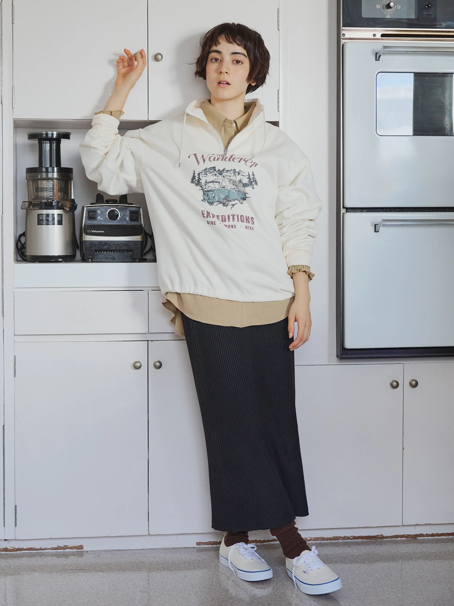 丈が少し長めのニットなので、スカートと合わせるときは少しインして着ております.