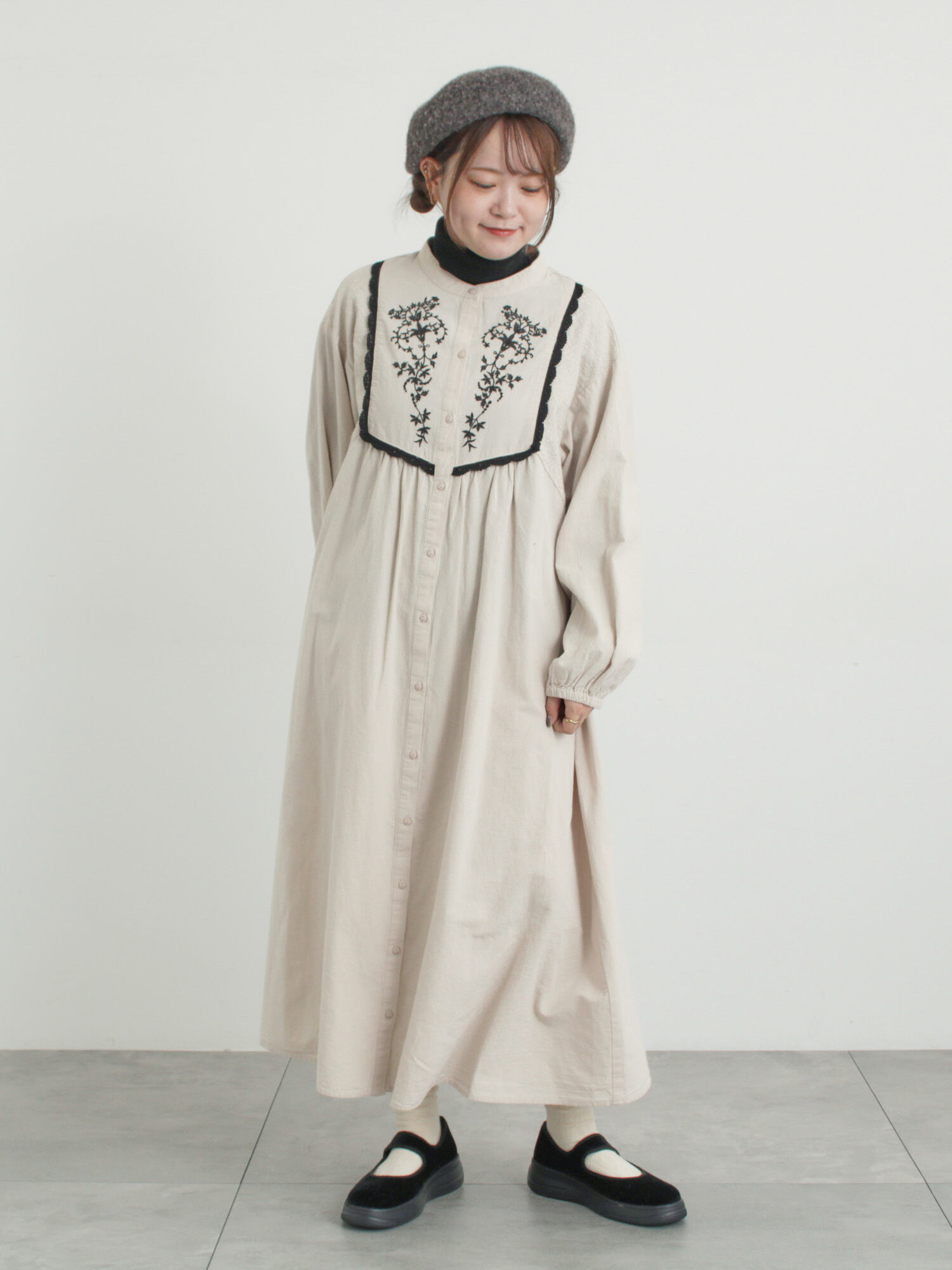 【S/Mサイズ】切替配色刺繍ワンピース