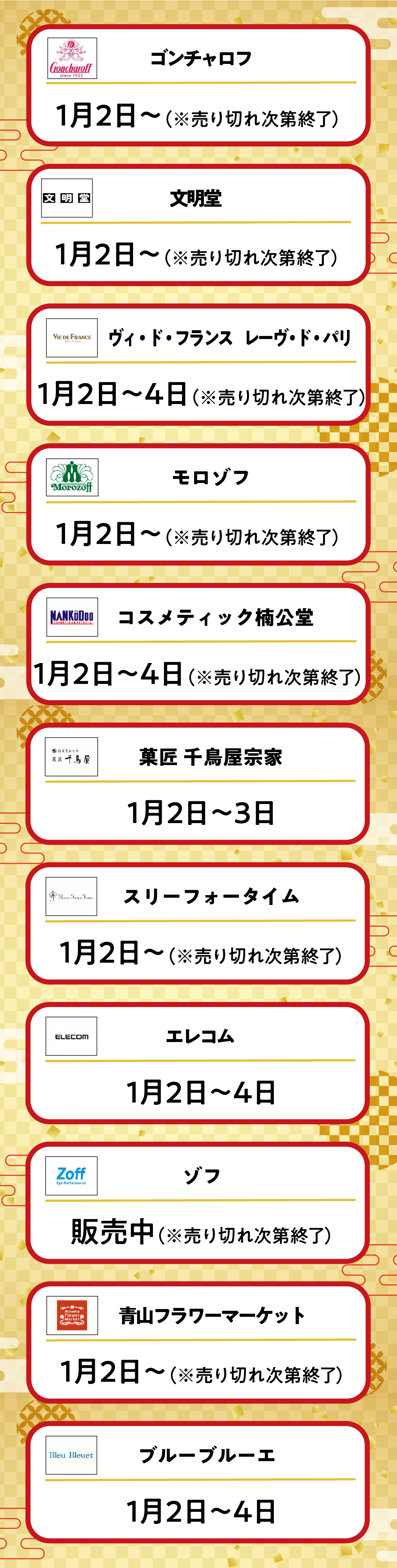 (※すべて店頭にて販売する福袋の情報です。)