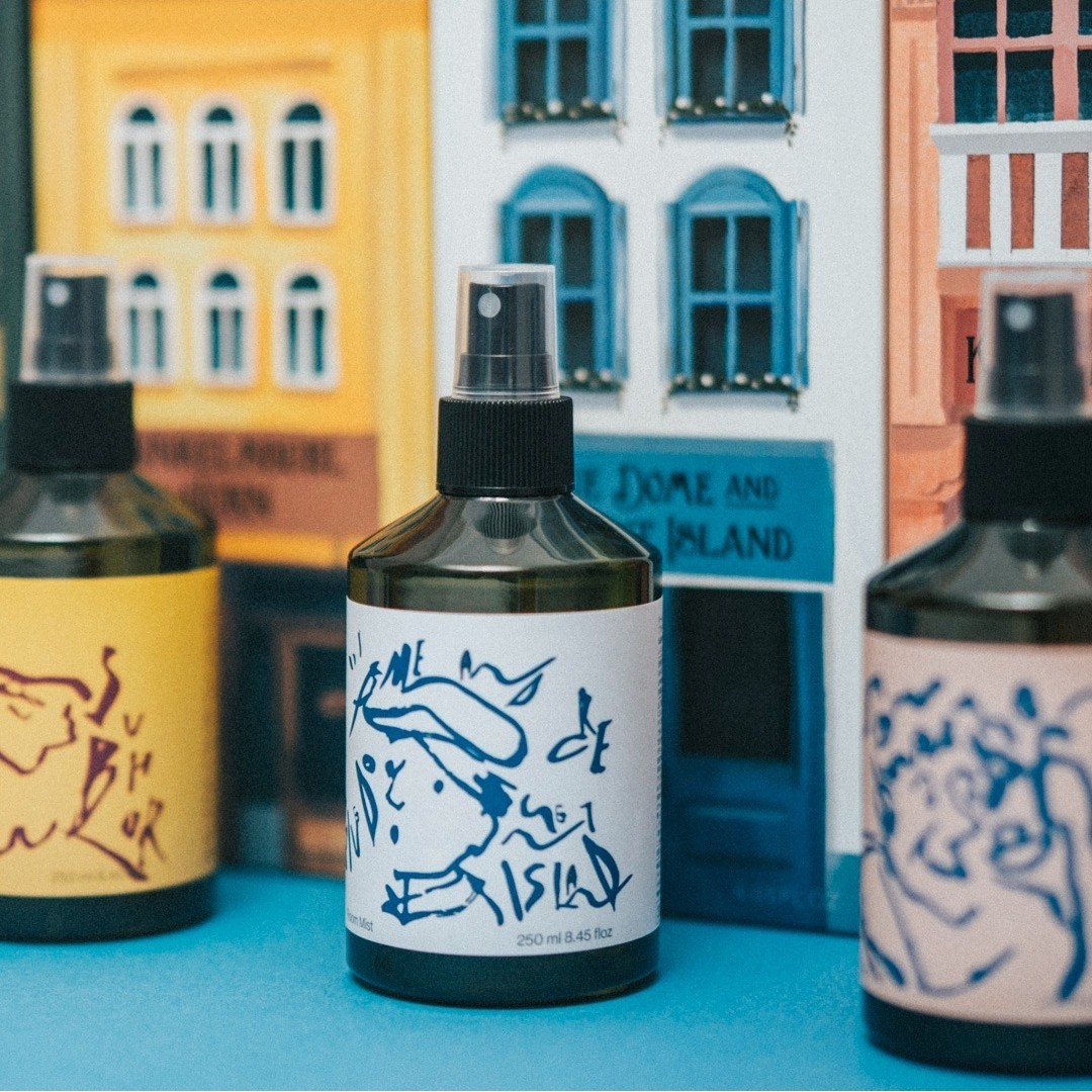 ルームミストは、その家に暮らす人々を描いたイラストで表現しました。