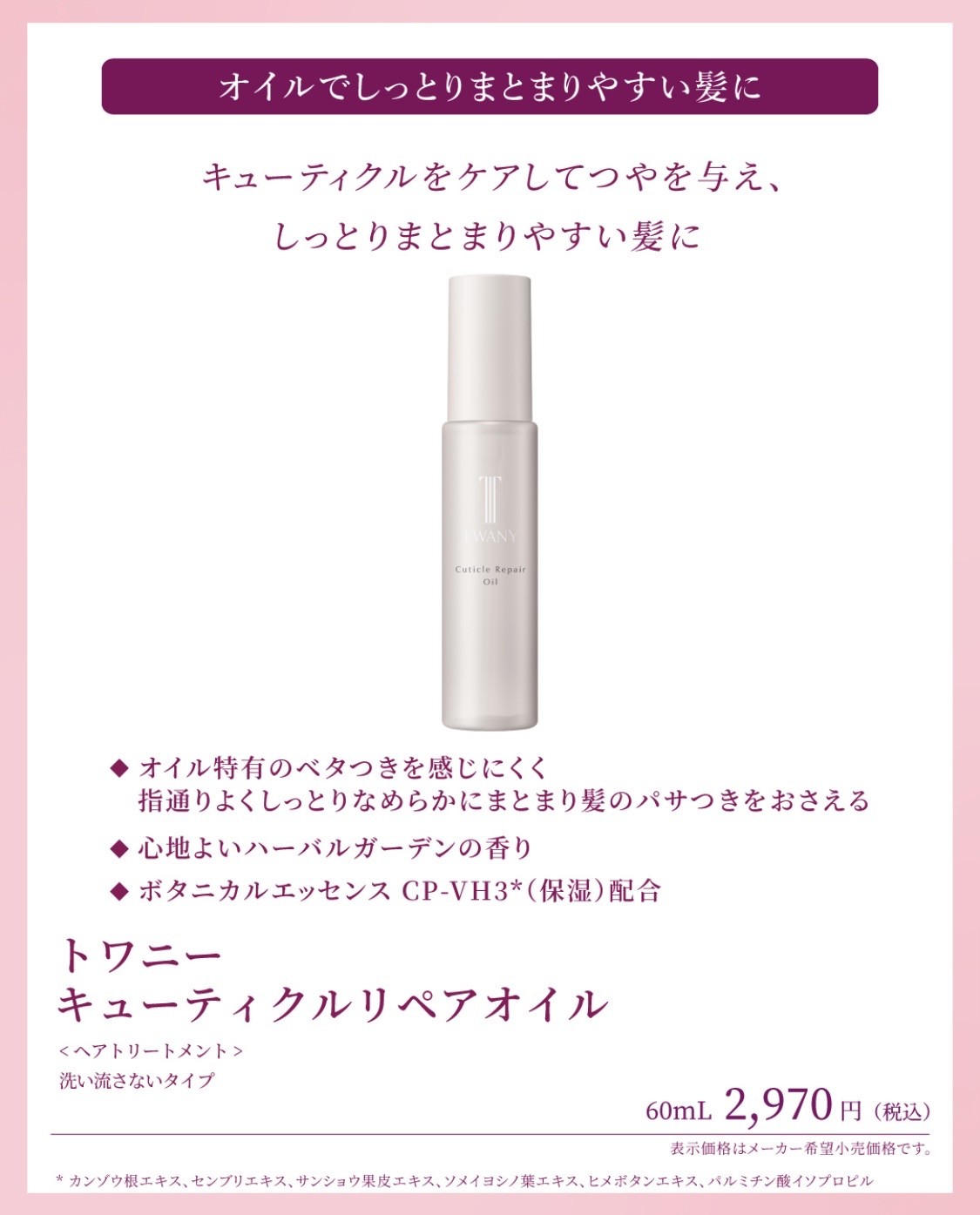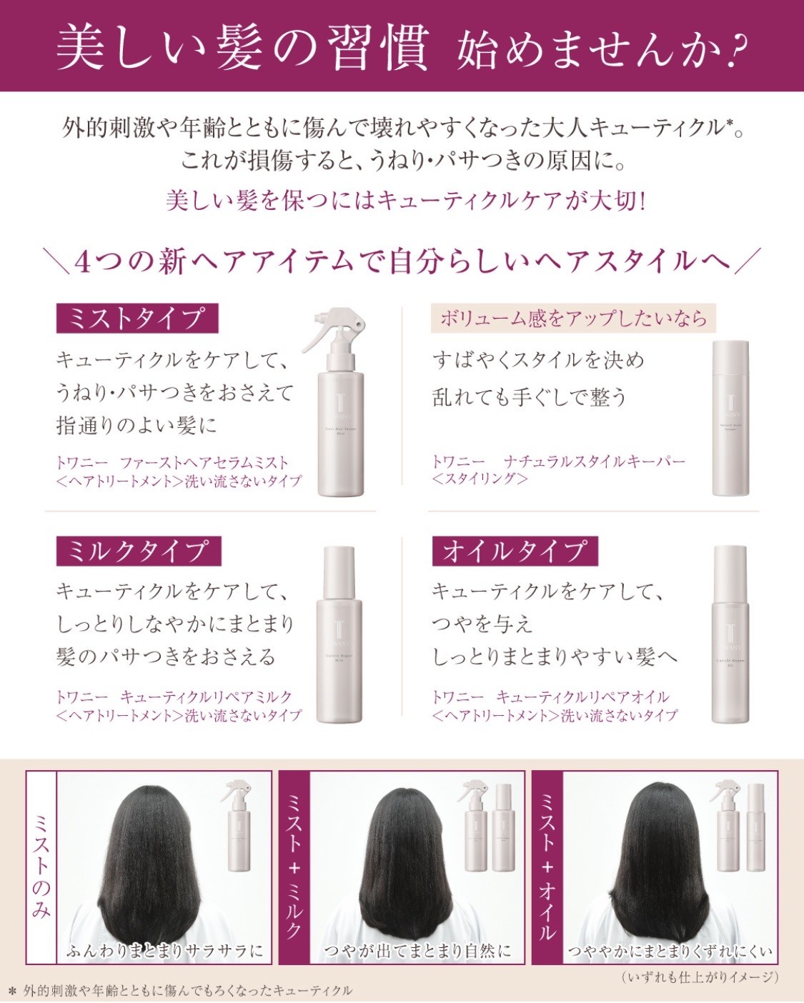 大人の髪悩みにトワニーのアウトバスシリーズ