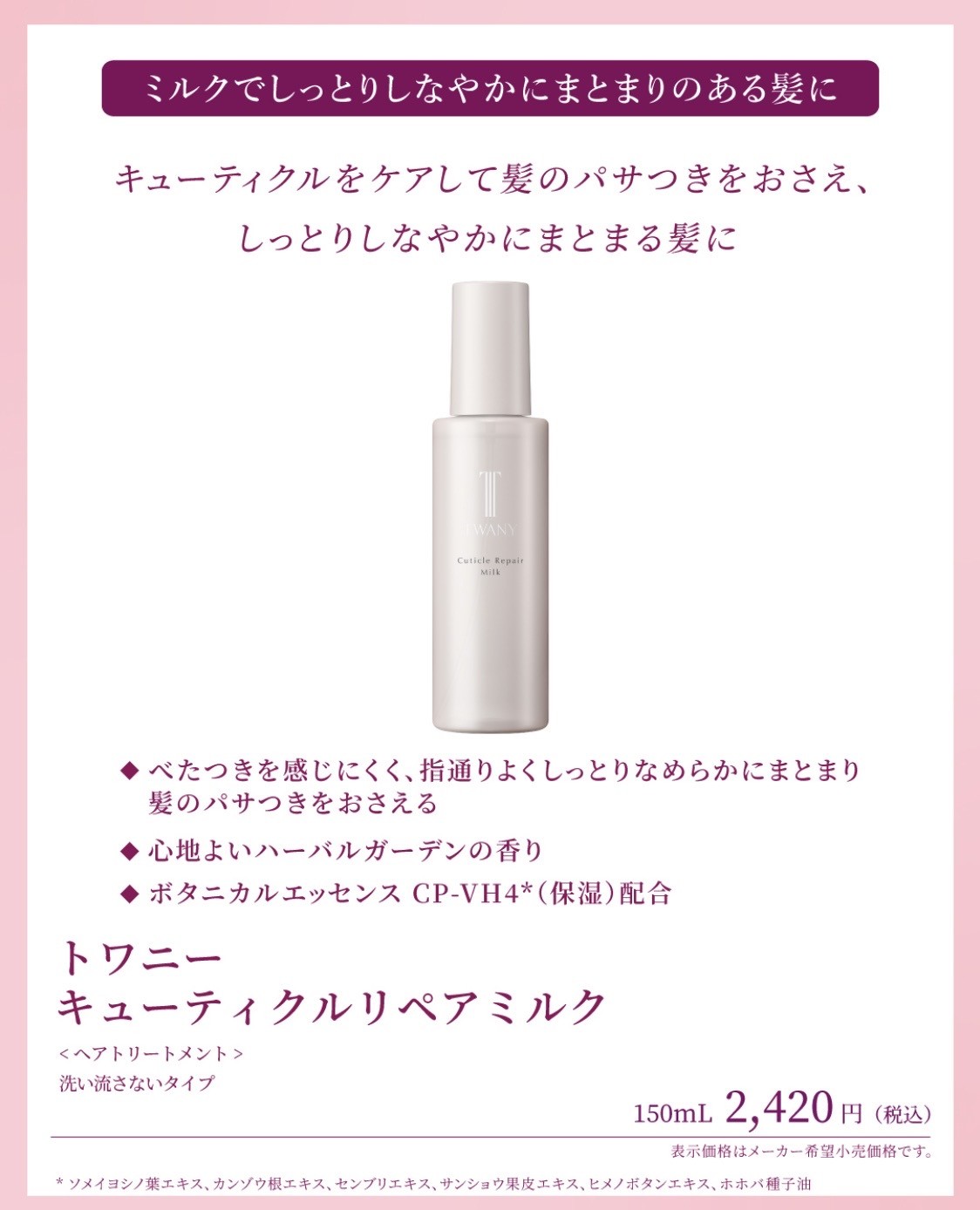 美しい髪質に変えてくれるトワニーのヘアケアシリーズからアウトバスケアが新たに仲間入りしました🤗🫧