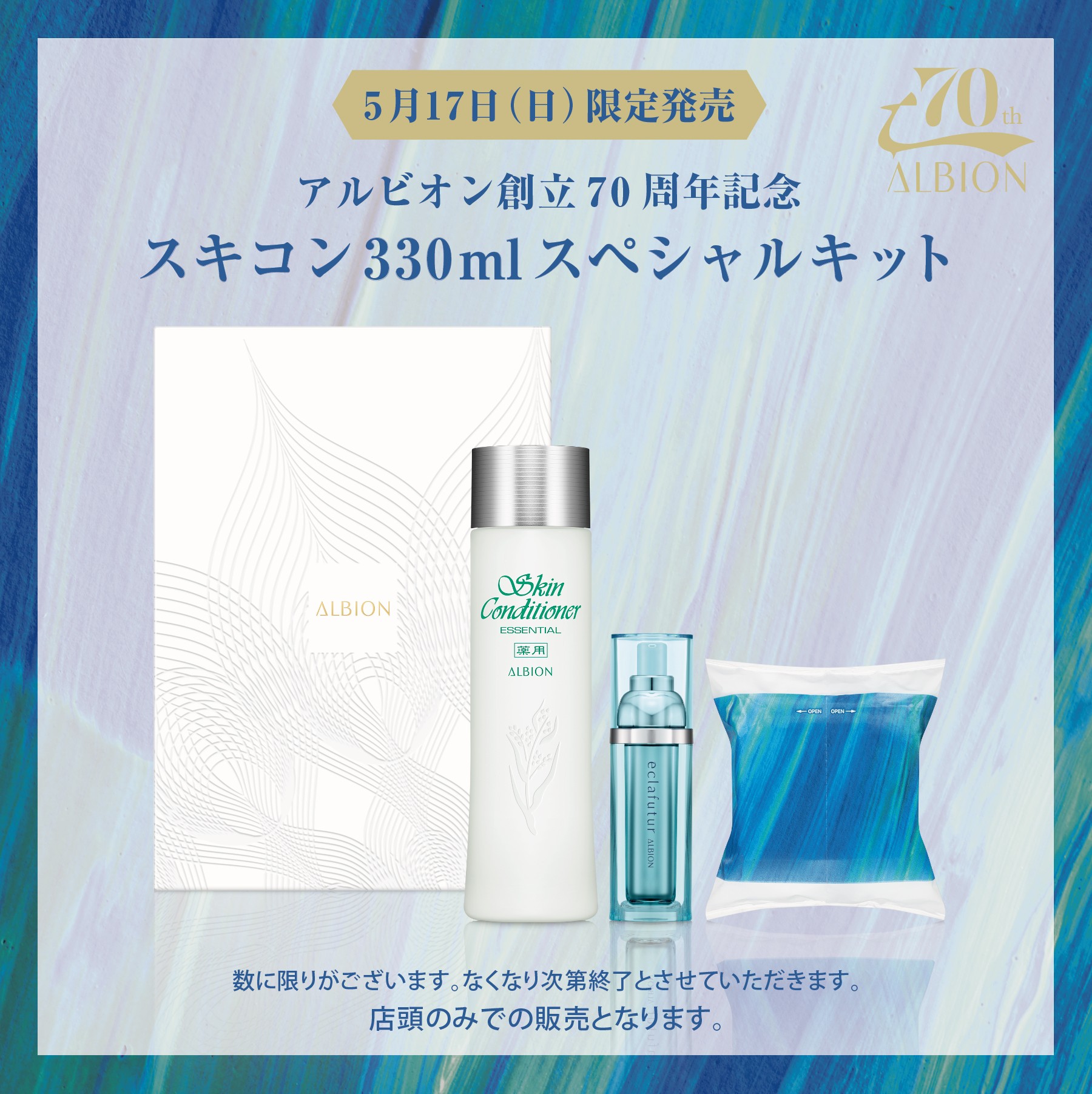 お陰さまで、今年アルビオンは創業70周年✨を迎える事が出来ました✨今年は70周年を記念して、アルビオンのスキンコンディショナーの特別キット2種発売されます‼️