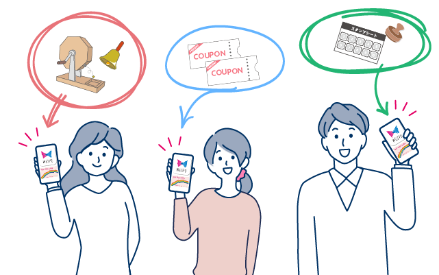 プリコで使えるアプリクーポンの配信や、スタンプラリー、抽選会など