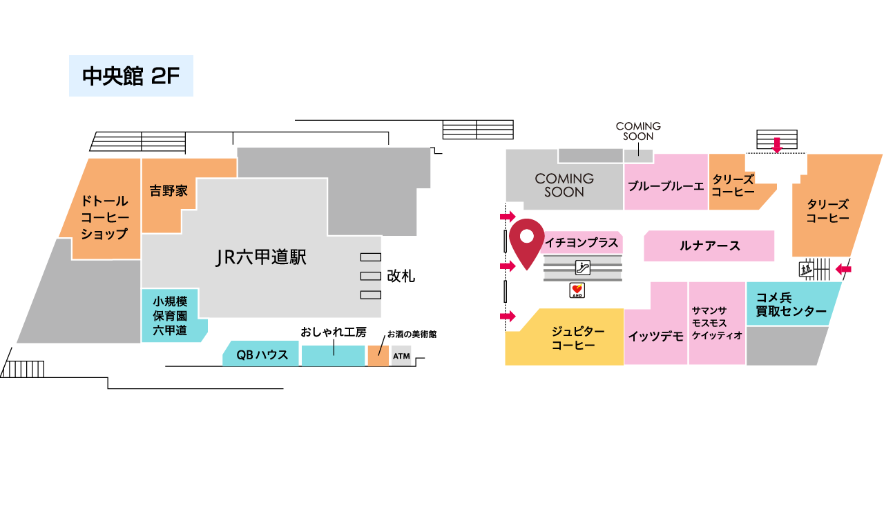 中央館2階 改札正面入り口中