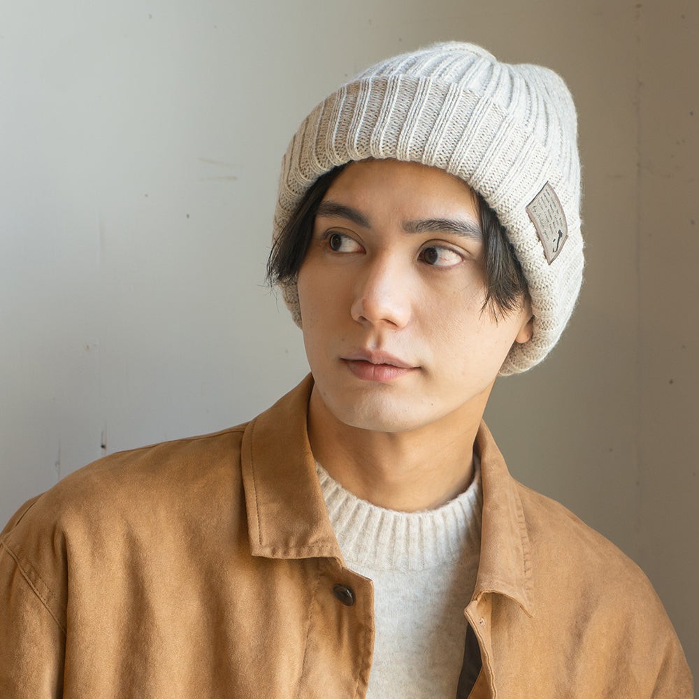 リブ編みなので伸縮性があり、頭の形にフィットし、頭のサイズが大きめの方から、小さめの方まで、男女問わずお使い頂けて、贈り物にもおすすめです。