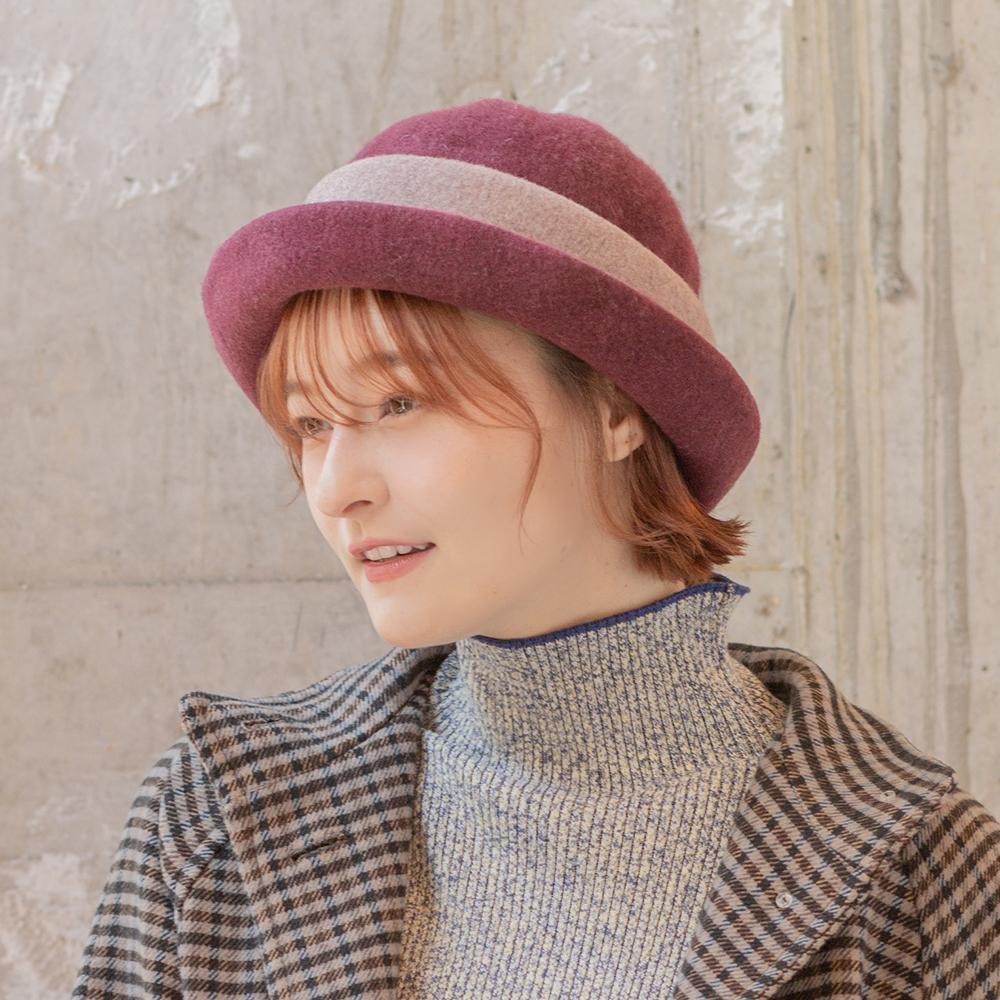 そのまま被ってすっぽりクロッシェスタイルや、裏返してツバを折り返すことでボーラーハット風、はたまた、くるくると折り返してトークベレー風などなど、