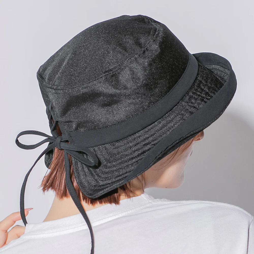 帽子後ろ部分は紐で結ぶ仕様になっているので、髪の毛を結んだスタイルでもストレスなく被っていただけます!
