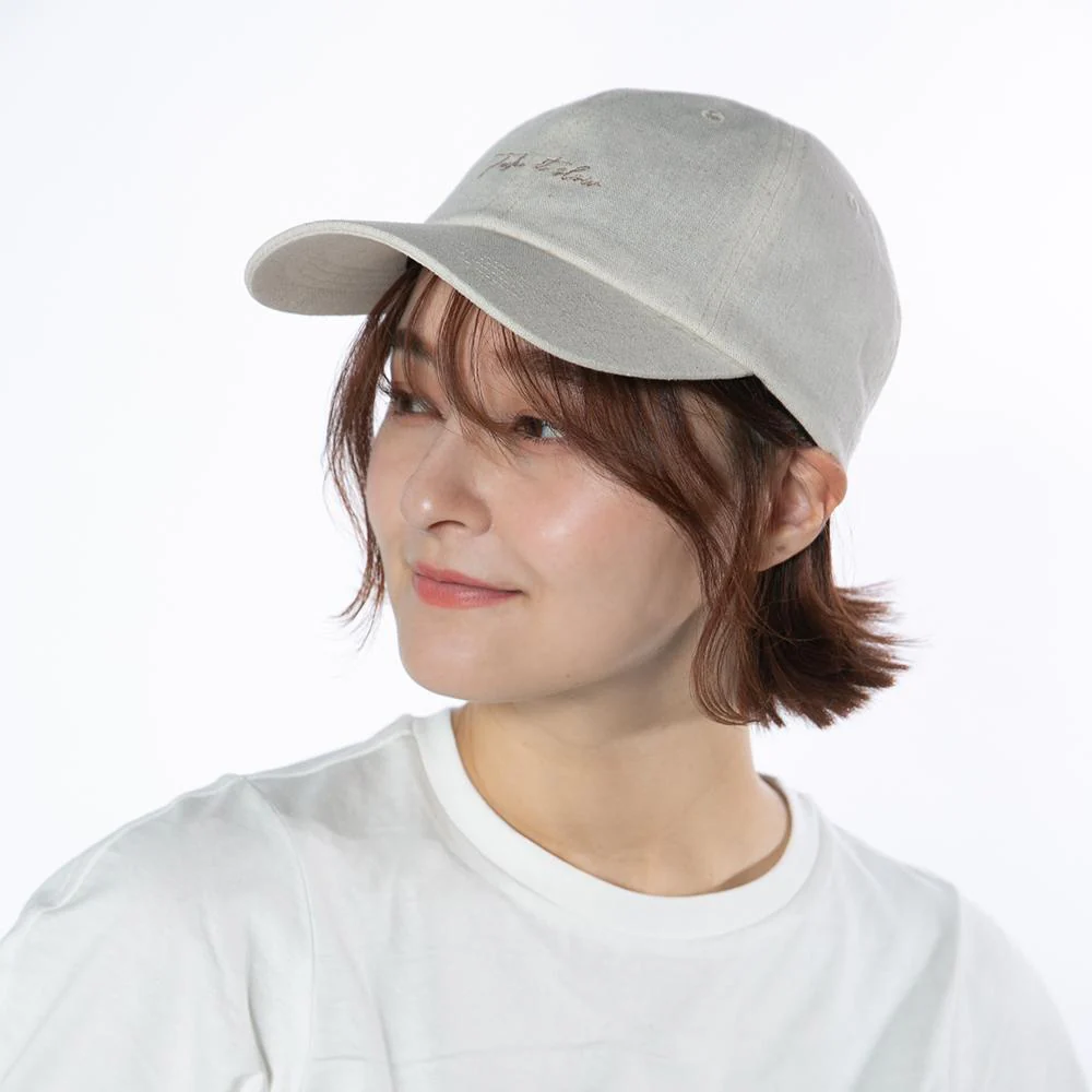 麻混筆記体刺繍キャップ ¥3400(税込み)