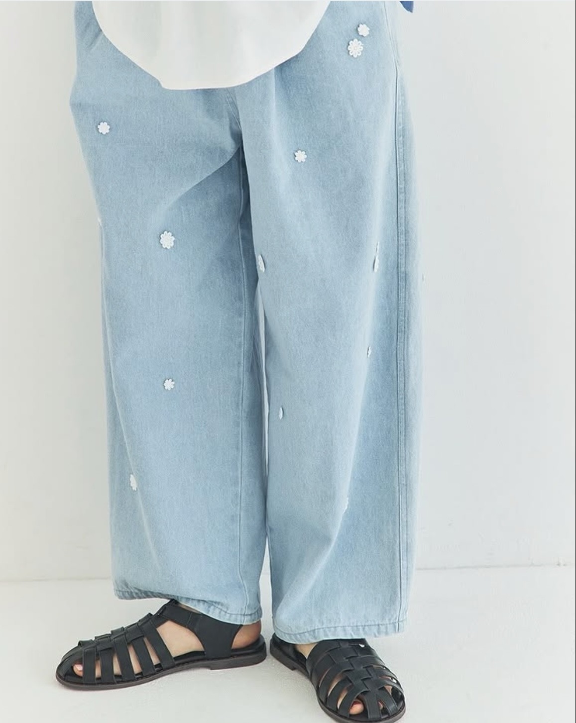 立体的なレースモチーフがアクセントのデニムパンツが登場!ゆったりシルエットでラクチンな履き心地ながら、可愛らしさをプラスしてくれます。
