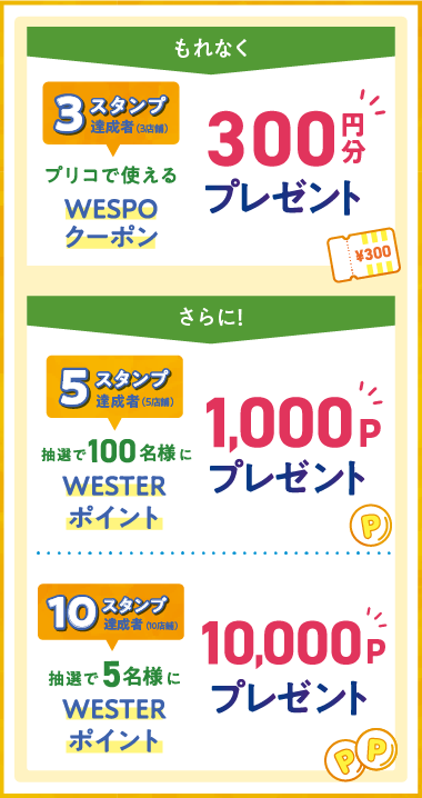 スタンプ3つ集めるともれなく、プリコで使えるWESPOクーポンプレゼント!