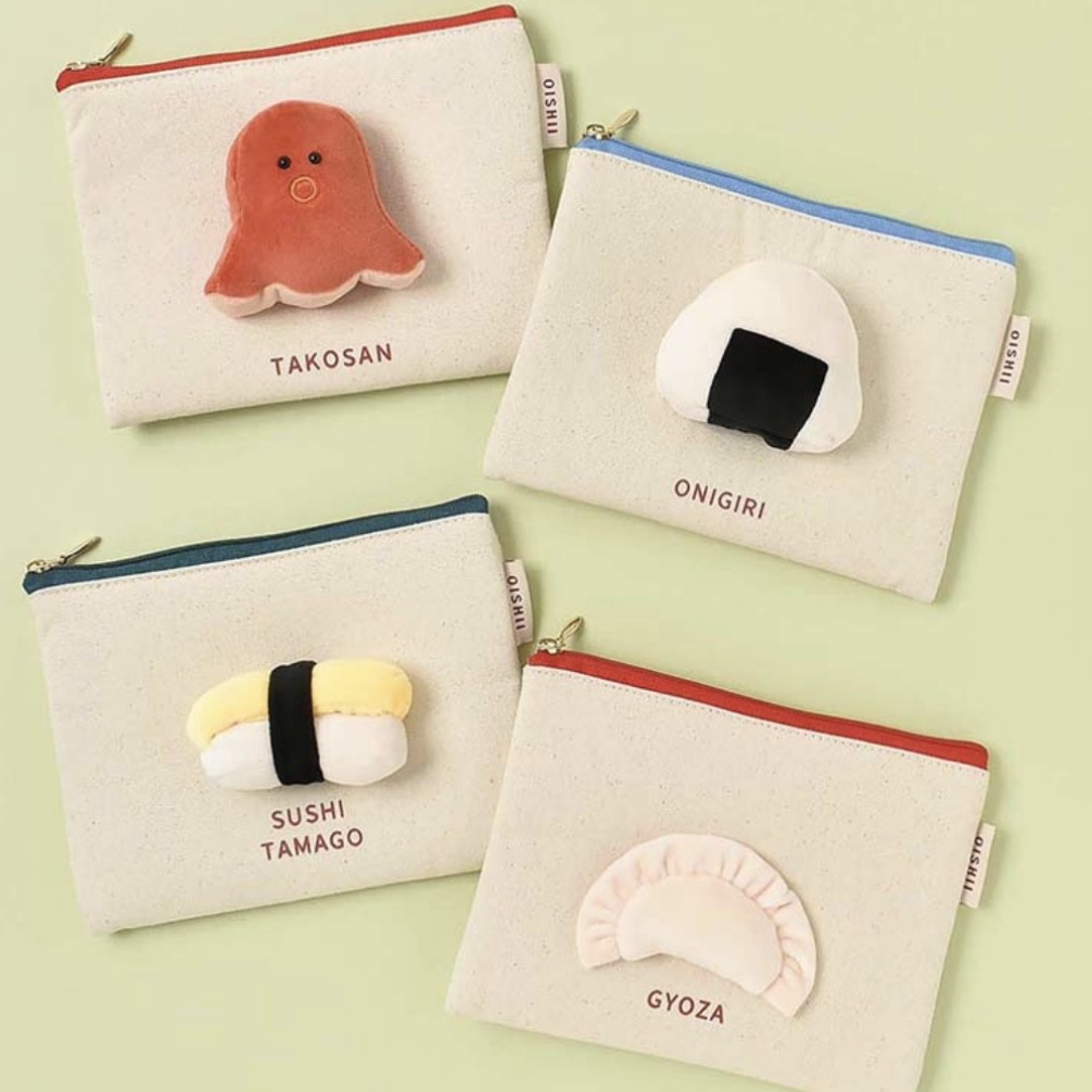おいしいものをモチーフにしたインパクト抜群のフラットポーチ。