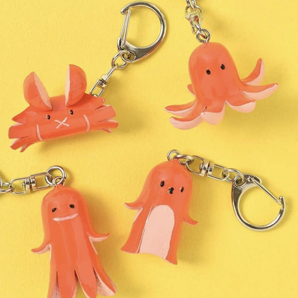 タコウインナー・おにぎり・タマゴ寿司・餃子の4種類、マスコットが付いたキュートなデザイン。