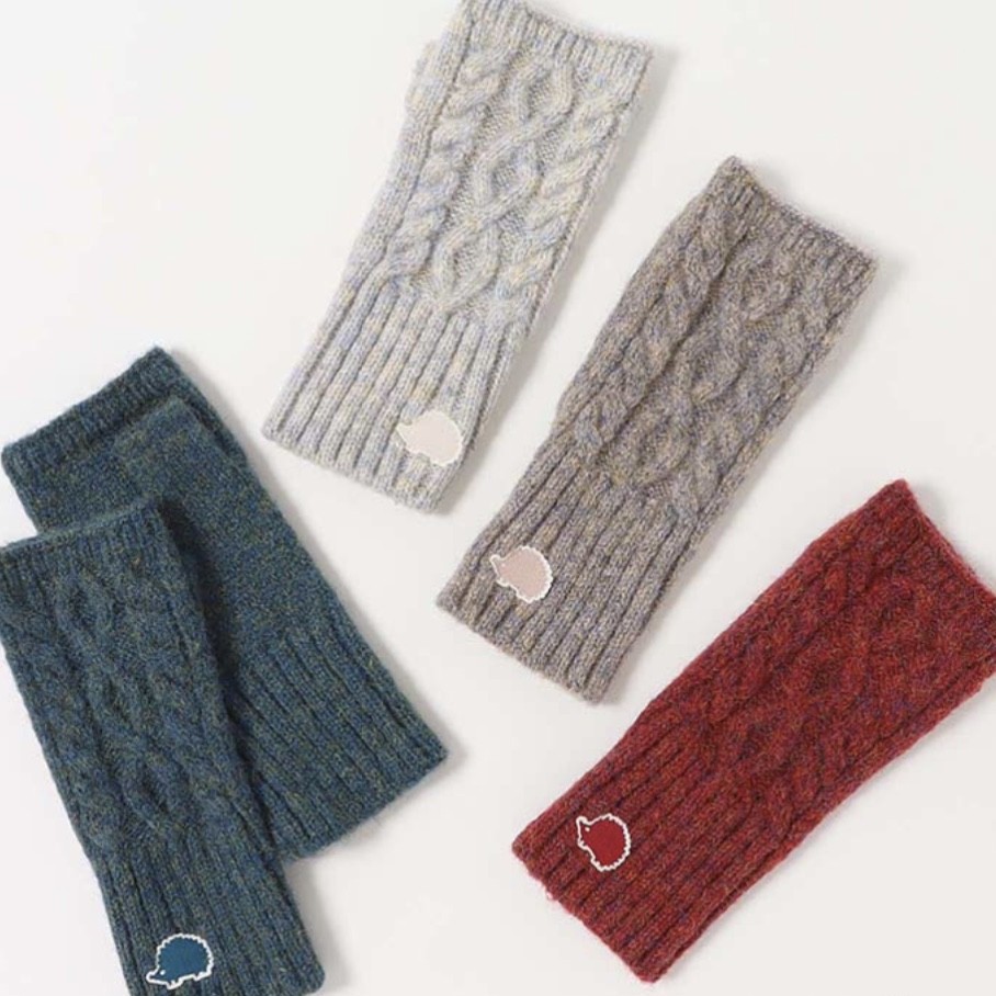 季節感のあるケーブル編みのフィンガーレスグローブ。