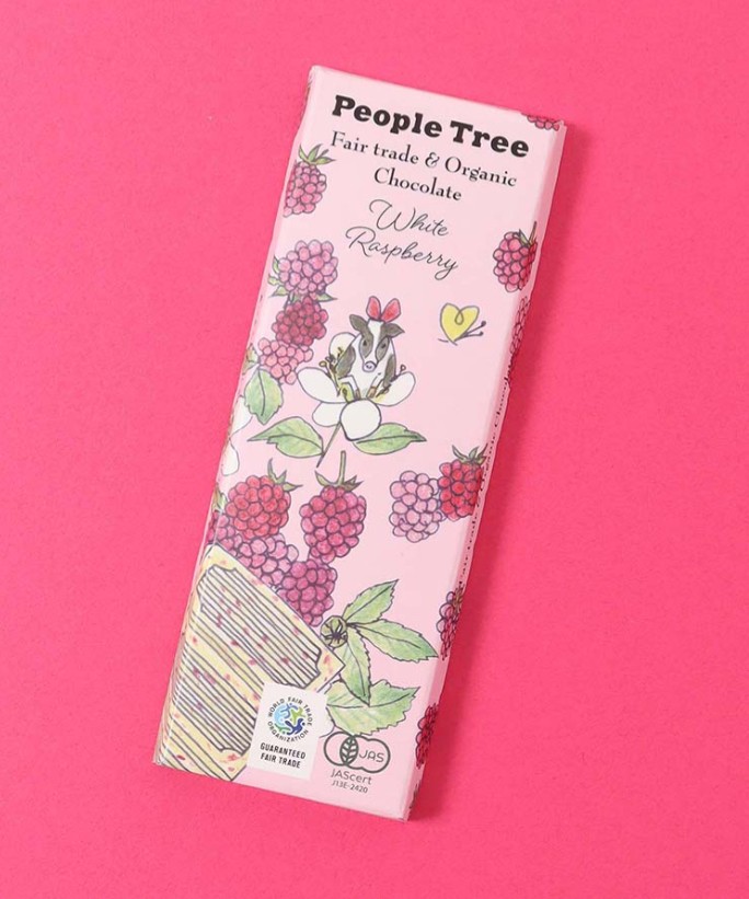 ●ピープルツリー フェアトレード&オーガニック板チョコ ホワイト・ラズベリー 524円(税込)