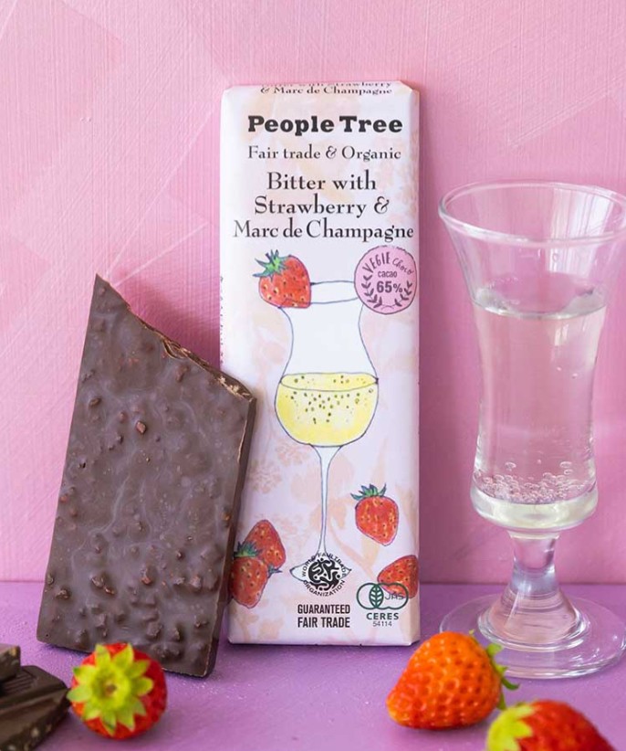 ●ピープルツリー フェアトレード&オーガニック板チョコ ビターウィズストロベリー&マール・ド・シャンパーニュ 524円(税込)