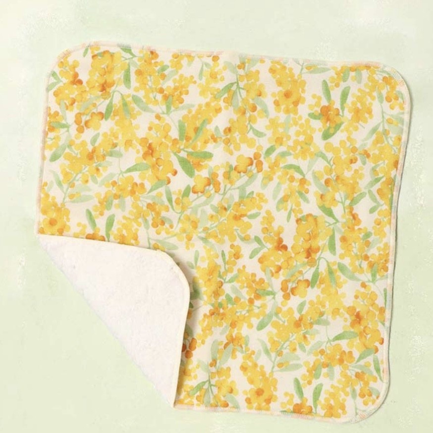 ミモザ柄のかや生地ふきん。