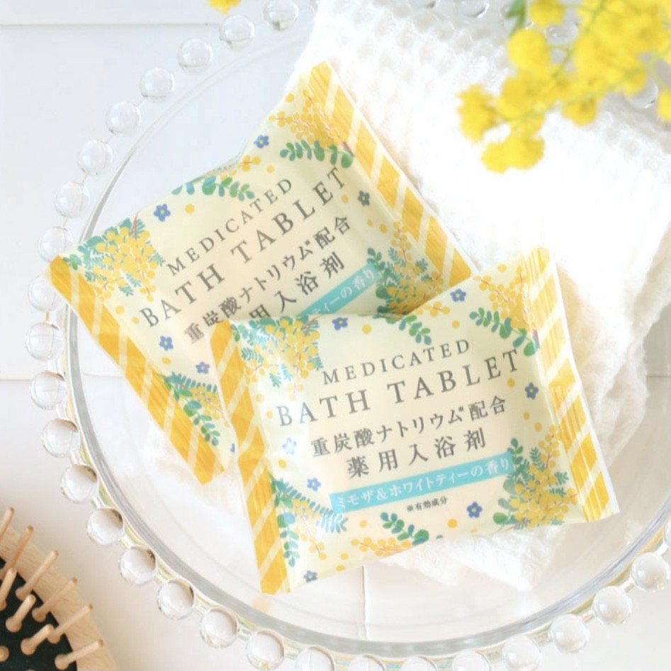 ミモザ&ホワイトティーが香る重炭酸バスタブレット。