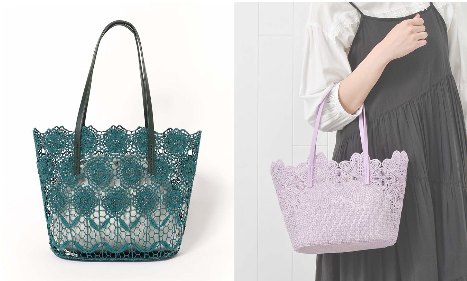 繊細なレースのデザインにうっとりする、ブルーブルーエオリジナルのバッグ。